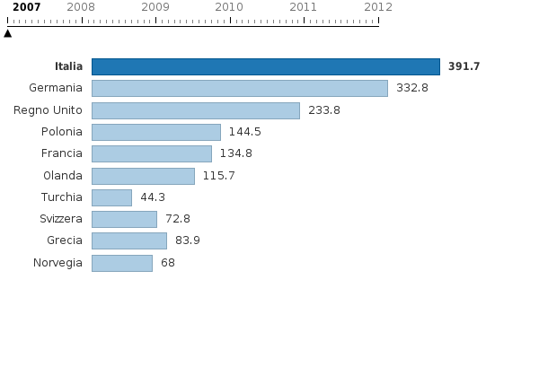 Valore al consumo in milioni di euro - Spostare il mouse sulla barra qui sotto per visualizzare l'anno